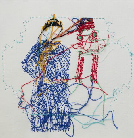 in a way that contains the traces of time. I embroidered traditional Mongolian costumes on their pictures.
